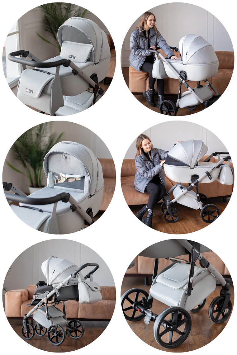 Прогулочный блок в коляске Adamex Nola просторный и комфортный. Вы непременно оцените защищенность ребенка в нем.